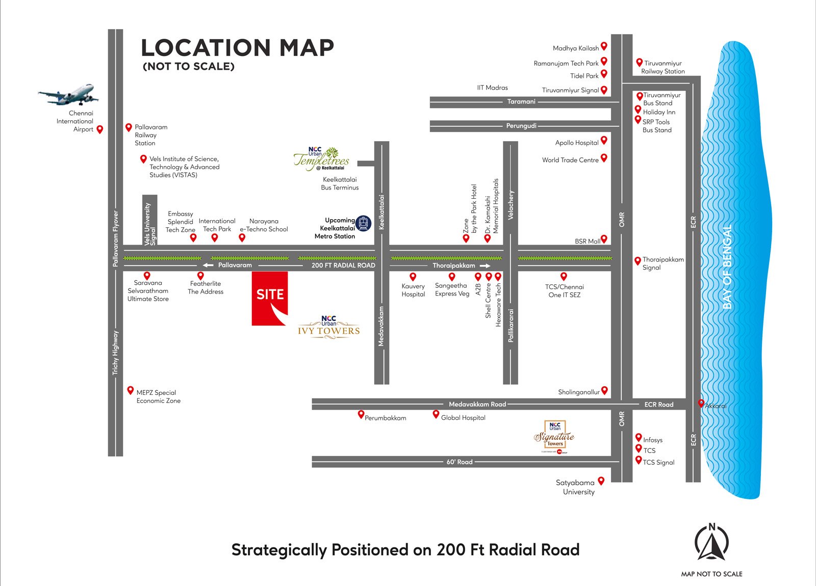 Nestled in the heart of Pallavaram, Chennai, Ivy Towers’ prime location is a commuter’s dream, ensuring you reach your office swiftly and efficiently. The proximity to major business districts and corporate hubs means you spend less time commuting and more time achieving your professional goals.